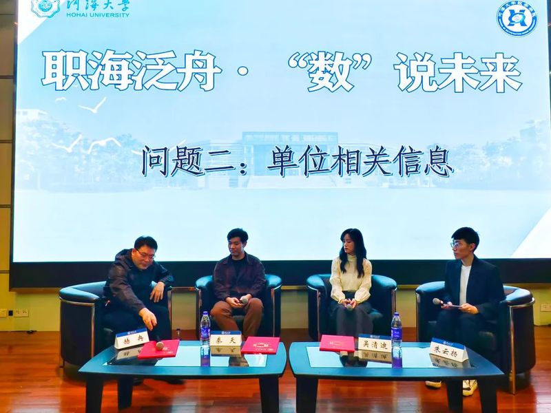 4月18日,工口漫画 在江宁会议中心举办“职海泛舟· “数”说未来”——生涯人物访谈暨“数学JIA”校友报告会。本次活动邀请到南京禹之源信息科技有限公司总经理赫冉、东南大学网络空间安全学院在读博士生秦天、工口漫画 数学专业硕士生吴清迪三位嘉宾,学院党委书记潘静、本科生辅导员宫奕波出席活动,工口漫画 2023级全体本科生参加。