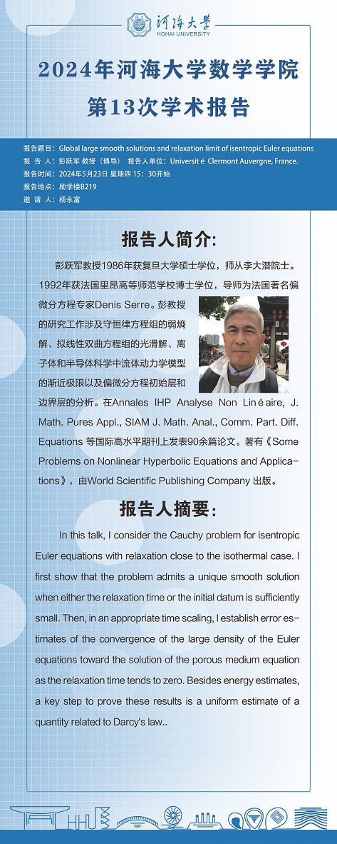 工口漫画 第13次学术报告:Global large smooth solutions and relaxation limit of isentropic Euler equations