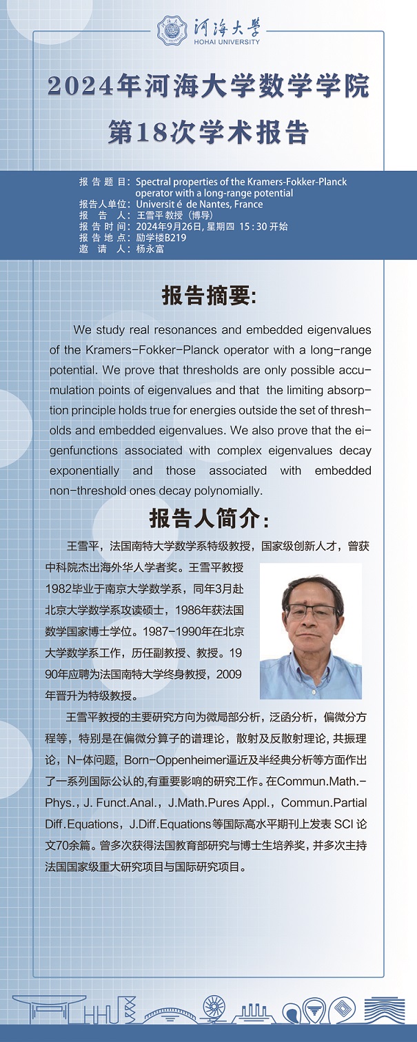 工口漫画 第18次学术报告:Spectral properties of the Kramers-Fokker -Planck operator with a long-range potential