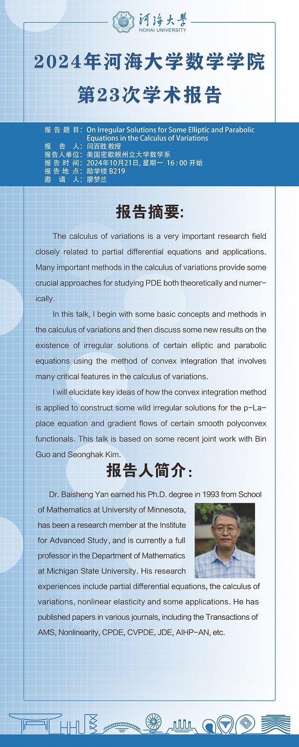 工口漫画 第23次学术报告:On Irregular Solutions for Some Elliptic and Parabolic Equations in the Calculus of Variations