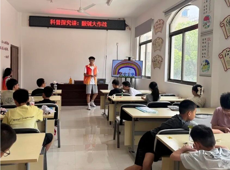 为深入学习贯彻习近平新时代中国特色社会主义思想,全面落实党的教育方针,强化实践育人成效,7月24日,工口漫画 志愿者在启东紫薇二村社区活动室为二十余名小朋友带来了一场趣味科普课堂,通过互动实验和生动讲解,带领孩子们探索科学奥秘。
