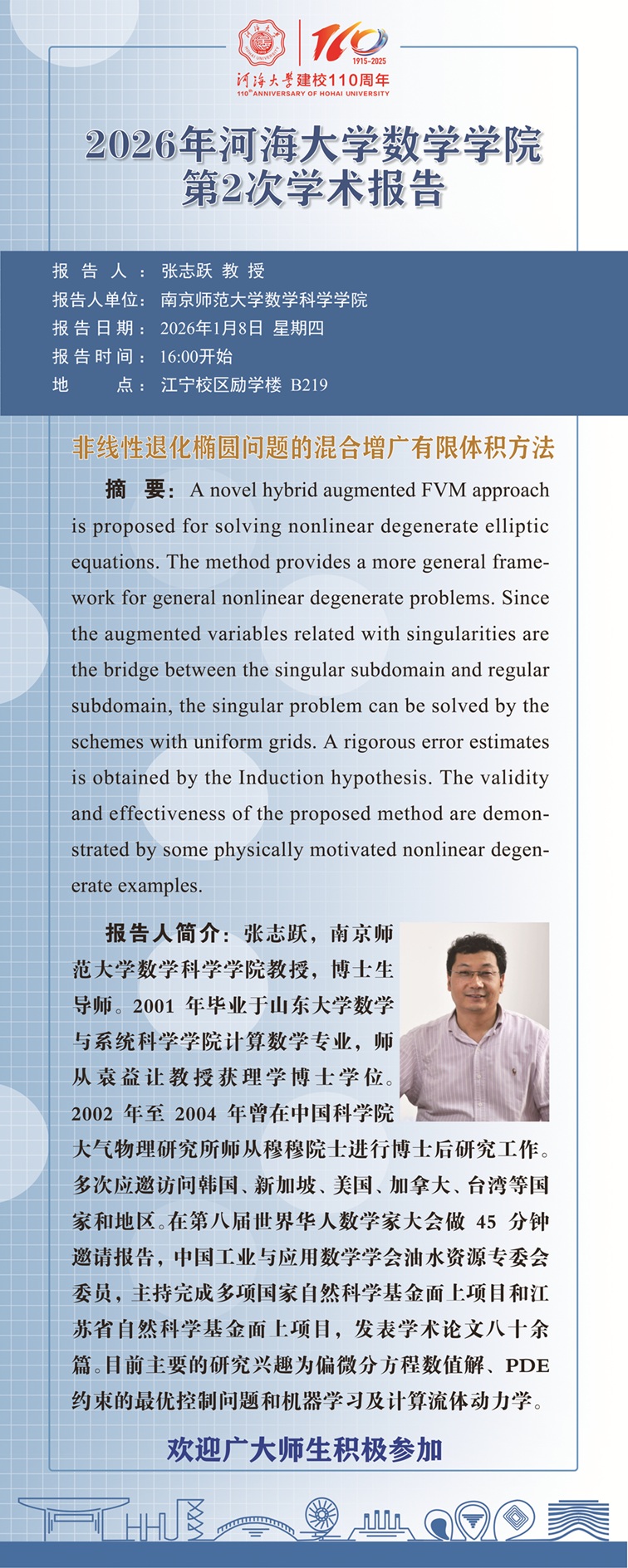 工口漫画 2026年第2次学术报告:非线性退化椭圆问题的混合增广有限体积方法