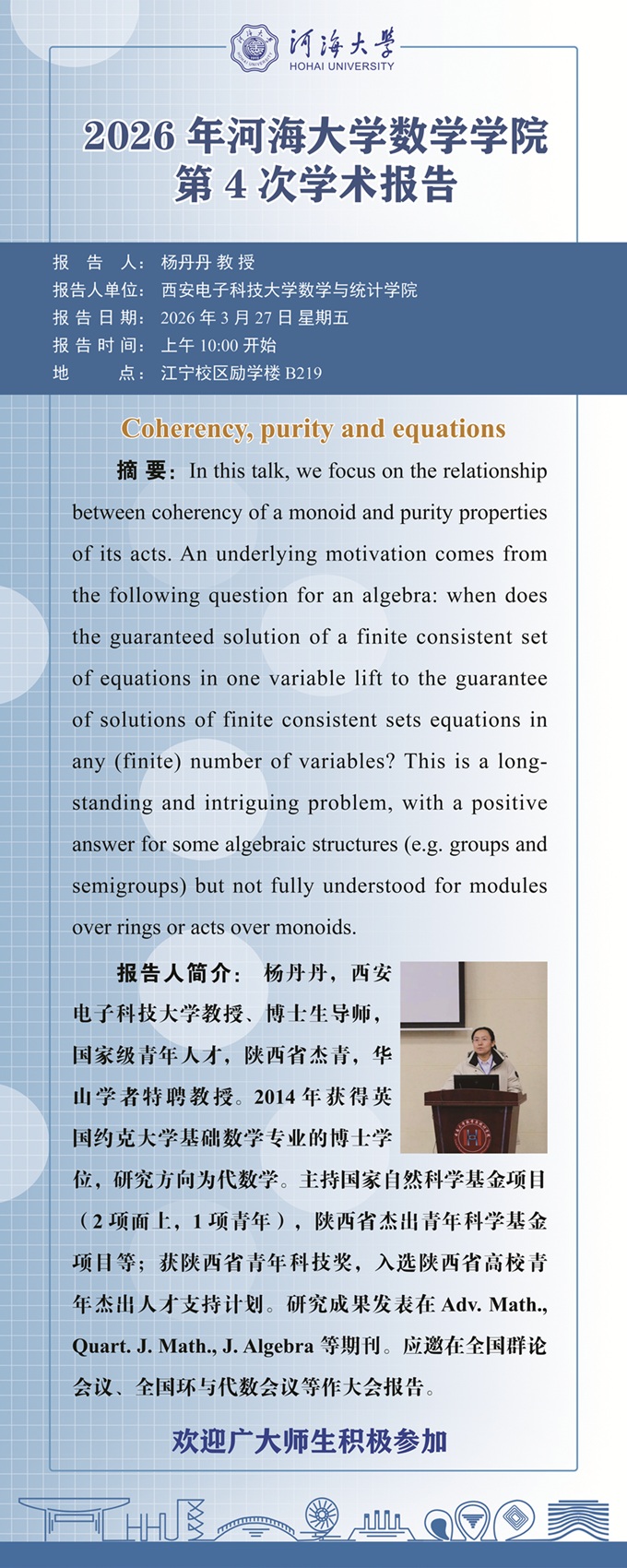 工口漫画 2026年第4次学术报告:Coherency, purity and equations