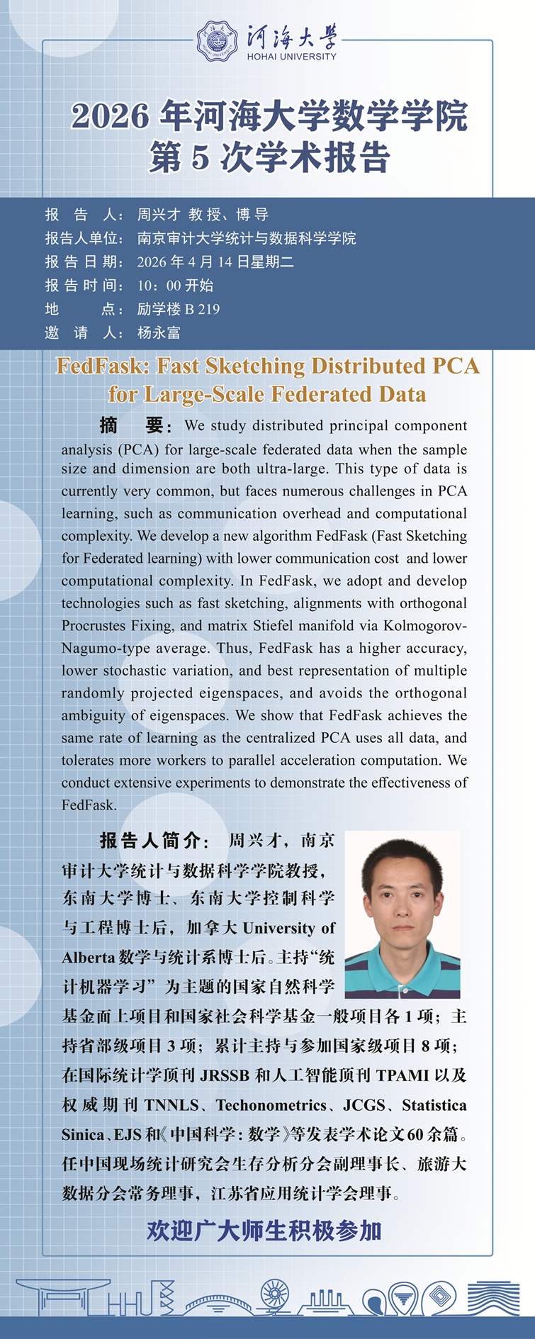 工口漫画 2026年第5次学术报告:FedFask Fast Sketching Distributed PCA for Large-Scale Federated Data